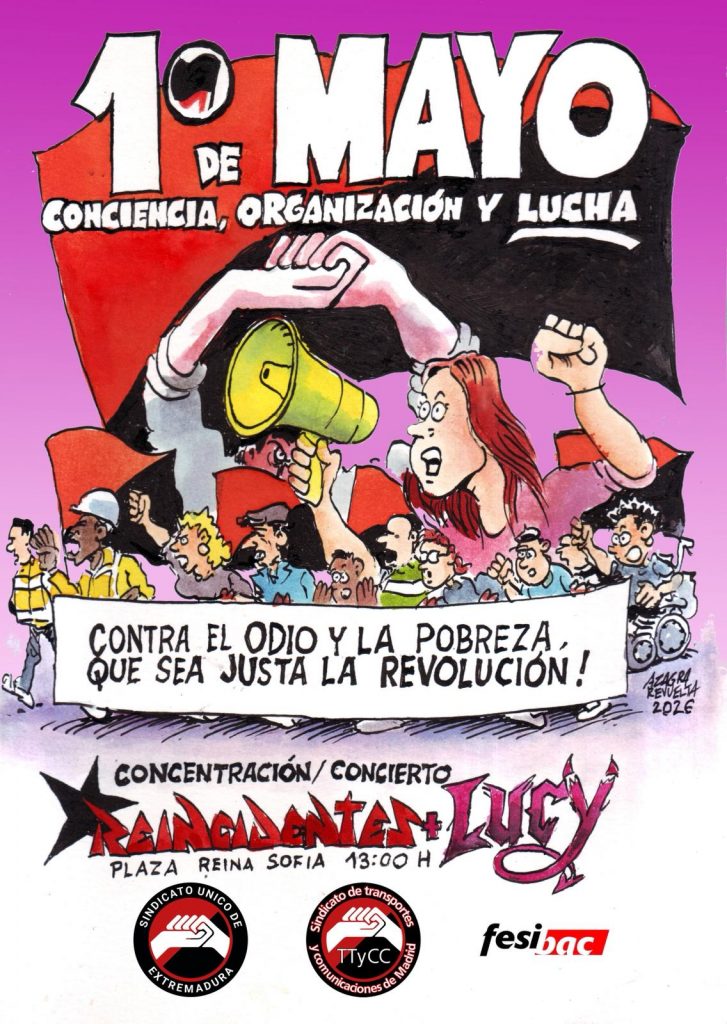 Hoy, 1 de mayo, volvemos a las calles porque el aire que respiramos está cargado de amenazas. Nuestro lema es claro y no admite medias tintas: Contra el odio y la pobreza: ¡que sea justa la revolución!